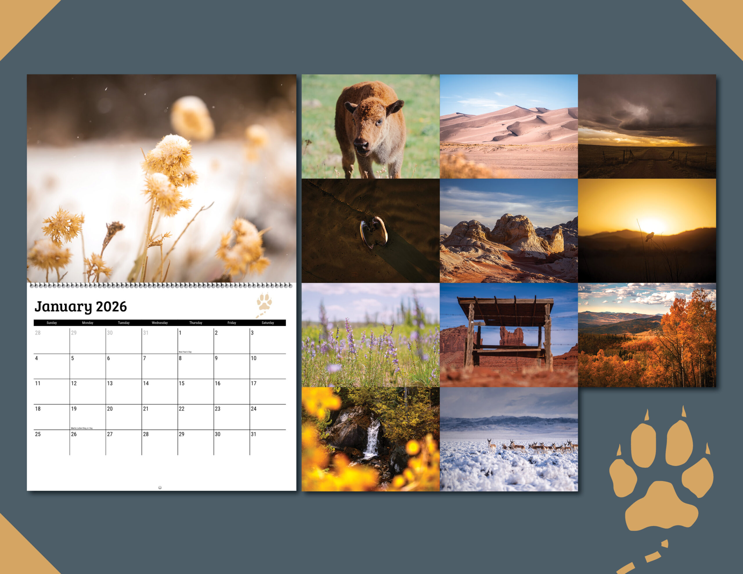 This 8.5×11 wall calendar features a curated selection of landscape photographs from the places that have shaped my journey — quiet roads and shifting light. Designed to feel at home in everyday spaces, it’s an easy, understated way to live with the wild year-round.